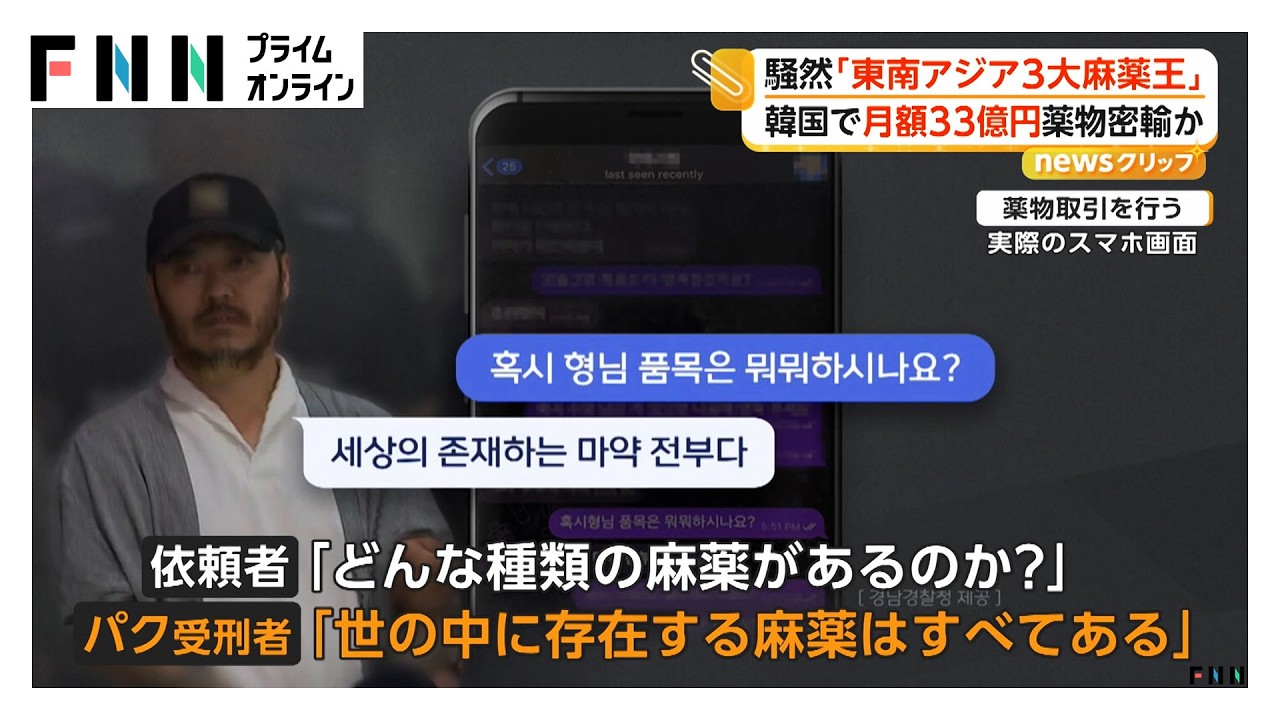 「東南アジア3大麻薬王」韓国へ移送 末端価格で最大月額33億円規模を流通か(2026年03月31日)