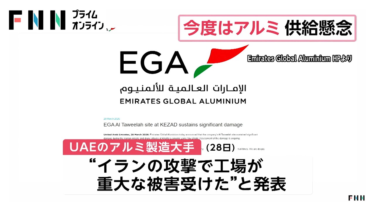 中東情勢の影響がアルミにも拡大 先物価格は4年ぶり高水準(2026年03月30日)