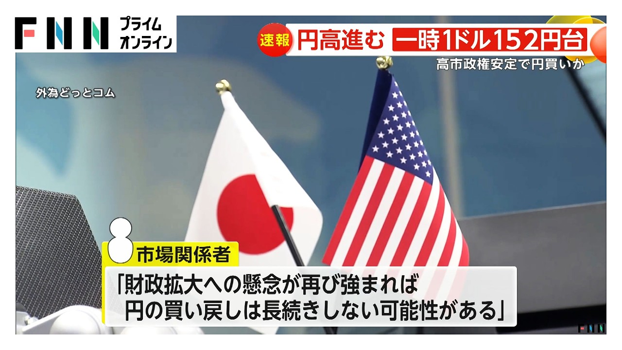 円高進み一時1ドル152円台…高市政権安定で円買いか 市場関係者「財政拡大の懸念なら長続きしない可能性」との声も(2026年02月11日)